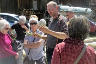 An der Führung von Roland Grütter auf dem Spargelfeld und bei der nachfolgenden Verarbeitung wurde eifrig zugeguckt und nachgefragt. Auch kritische Fragen hatten ihren Platz – und ihre Antworten.